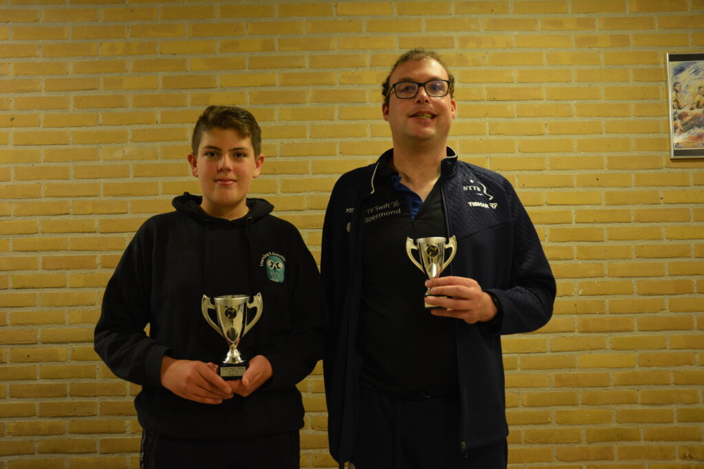 In alle poules is het ontzettend spannend gebleven voor de bemachtiging van de 1ste plaats. Razend veel vijf-setters, dat kan alleen maar betekenen dat er hard is gestreden door de spelers. Uiteindelijk kan er per poule maar een de beste zijn. Daar zullen de volgende winnaars hartstikke blij mee zijn: